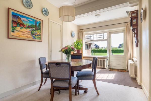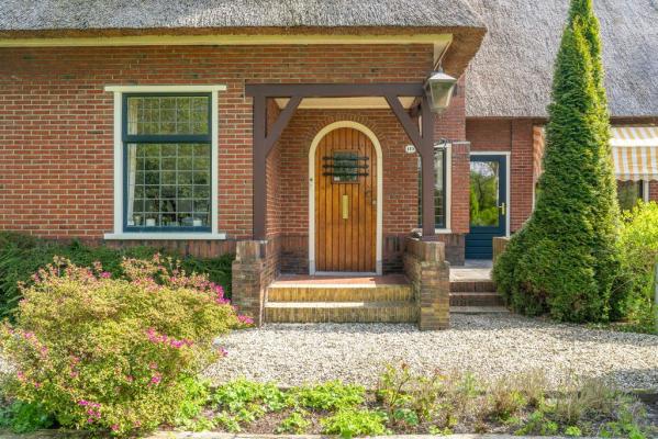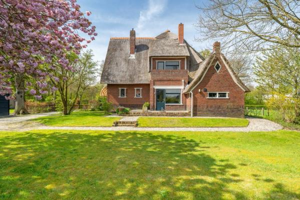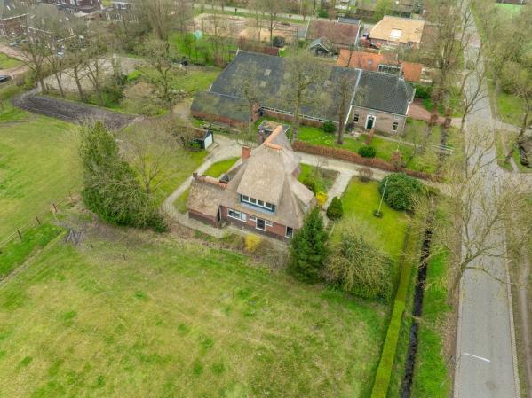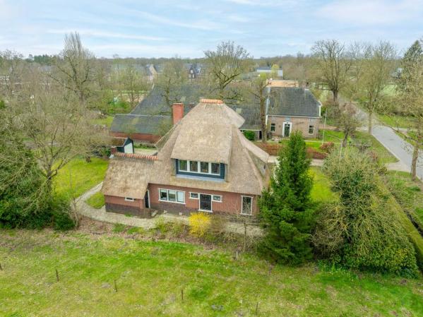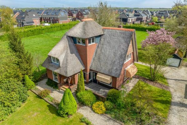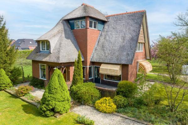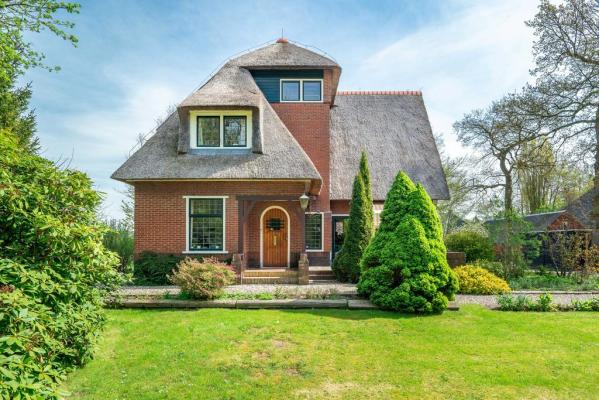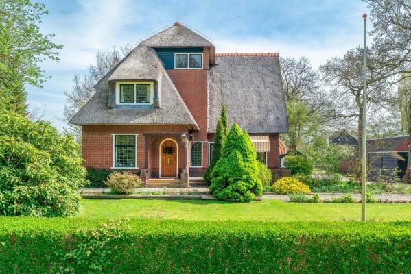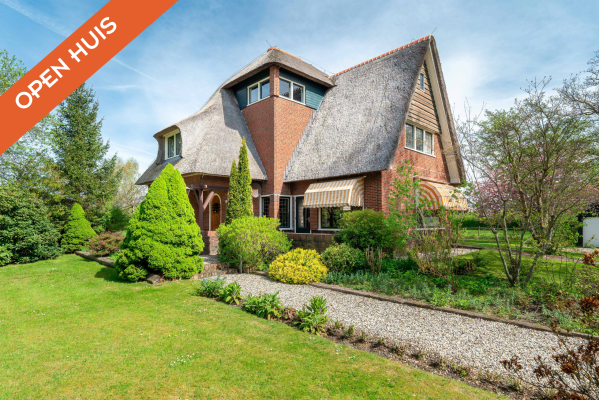 Deze sfeervolle villa uit 1934 is voorzien van diverse authentieke elementen zoals prachtige glas-in-lood ramen, paneeldeuren en fraai metselwerk. De schoonheid en stijl van het huis herinneren aan de kwaliteit van bouwen van vroeger. In de basis is het geheel altijd goed onderhouden waarbij de rieten kap in de afgelopen jaren in fasen is vernieuwd en de afwerking aan de binnenzijde ruimte biedt om dit naar eigen smaak en wens te moderniseren. Om een beeld te geven van de mogelijkheden van de woning zijn tussen de foto's enkele visuals toegevoegd. De villa is gelegen op een royaal perceel van 1.558 m² met uitzicht op groen voor, en grasland met paarden aan de achterzijde. Het perceel biedt voldoende ruimte voor parkeergelegenheid en een garage.