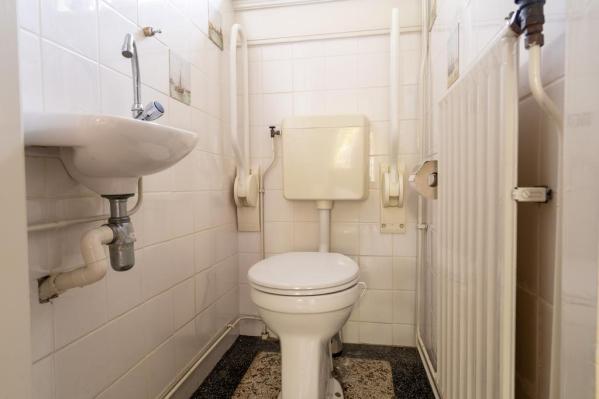 Entree/tochtportaal, hal met originele granito vloer en trapopgang, toilet met fonteintje, slaap/werkkamer aan de voorzijde, lichte woonkamer-ensuite met gashaard en toegang naar terras aan voorzijde en naar de achterzijde, dichte keuken met toegang naar de kelder, ruime bijkeuken voorzien van witgoedaansluiting en CV ketel.