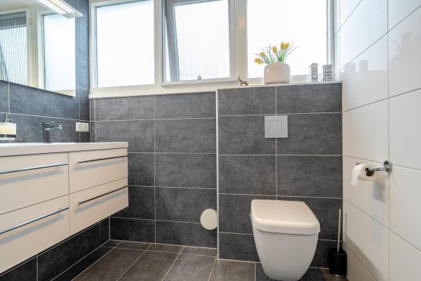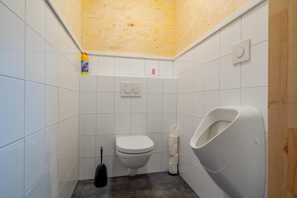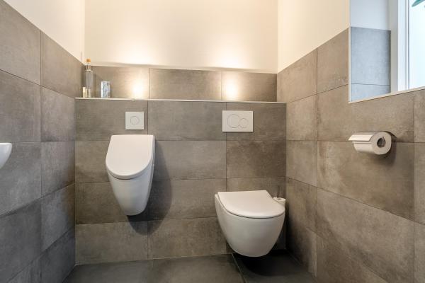 - Toilet, Urinoir, Dubbele Wastafel, Wastafelmeubel, Inloopdouche, Douche