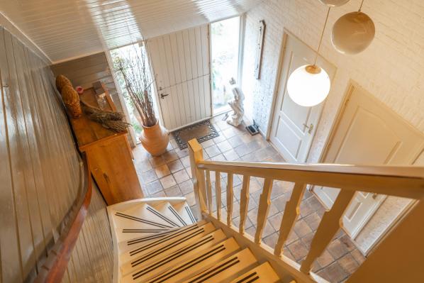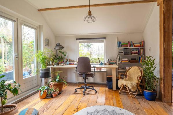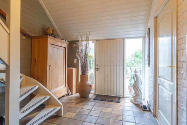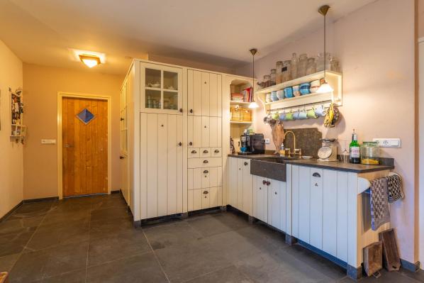 Deze woonboerderij, gebouwd in 1924, is royaal van opzet en beschikt over een praktische indeling. Op de begane grond bevinden zich naast de ruime woonkamer een gezellige woonkeuken, een grote slaapkamer en twee badkamers. Boven bevinden zich nog eens vier slaapkamers. Dankzij deze indeling is de woning geschikt voor diverse doeleinden. Er zijn voldoende kamers voor gezinsbewoning, de beneden gelegen (slaap)kamer maakt thuiswerken mogelijk, en de woning is tevens geschikt voor levensloopbestendig wonen. De besloten achtertuin, voorzien van diverse zitplekjes en een tuinoverkapping, biedt absolute privacy en is een fantastische plek om van het buitenleven te genieten. Daarnaast beschikt het terrein over meerdere bijgebouwen, waaronder een houten berging, stalruimte met hooizolder en een riant weiland. Deze voorzieningen maken het onder andere mogelijk om paarden en ander kleinvee aan huis te houden.