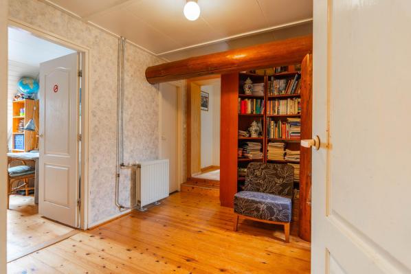 Overloop, 4 slaapkamers, waarvan één met walk-in-closet, bergruimte.