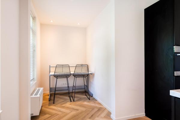 Dit instapklare appartement maakt deel uit van een fraai en kleinschalig complex dat in 2023 volledig en onder architectuur is gerenoveerd en is gesplitst in drie appartementen. Appartement 9b beschikt over de twee bovenste woonlagen en heeft in totaal een woonoppervlak van ca. 156 m² en kenmerkt zich door een prettige en ruime indeling. Bij binnenkomst via de hal wordt u direct verwelkomd in de lichte en sfeervolle woonkamer. De luxe open keuken met kookeiland vormt het hart van de woning en is de ideale plek om uitgebreid te koken en gezellig samen te zijn. Op de verdieping hierboven bevinden zich twee ruime slaapkamers en een luxe uitgevoerde badkamer met inloopdouche, ligbad en een stijlvol wastafelmeubel. Op beide woonlagen is er een separaat toilet, wat extra comfort biedt. De woning is tot in de kleinste details verzorgd en volledig instapklaar. U hoeft alleen nog maar te verhuizen, uw spullen uit te pakken en te genieten van comfortabel en mooi wonen.