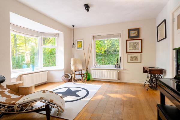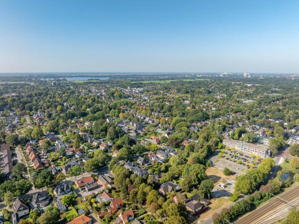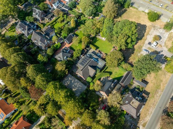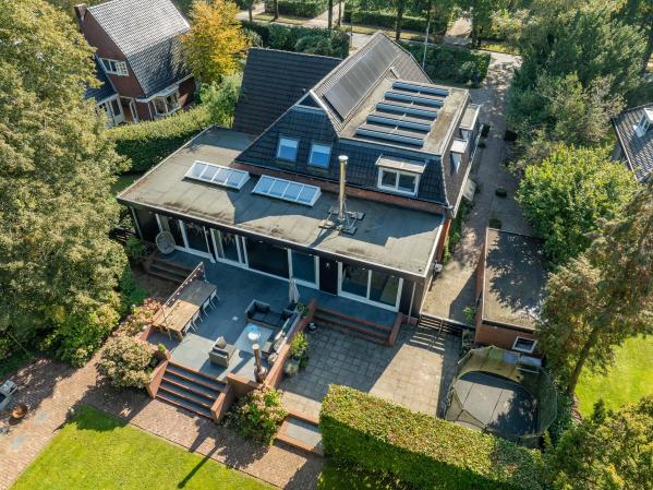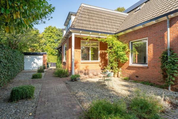 Te midden van Haren aan een lommerrijke laan gelegen royaal en robuust familiehuis met een heerlijke tuin en een vrijstaande garage.