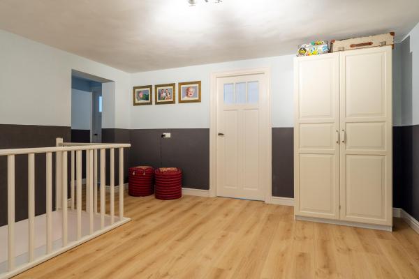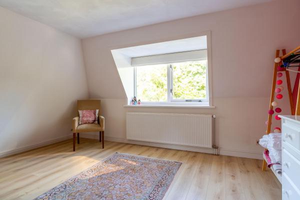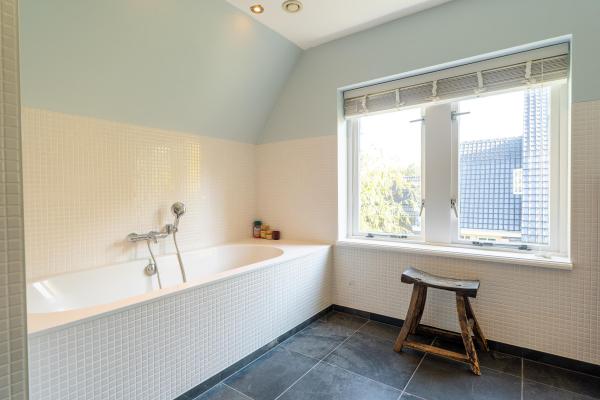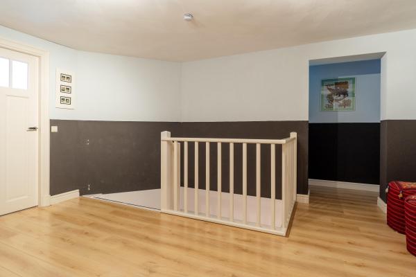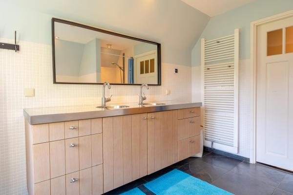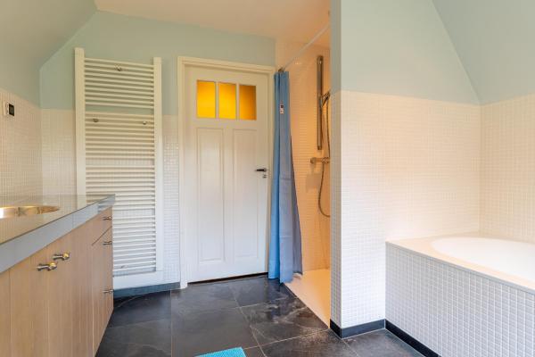 Overloop met separaat toilet, 5 slaapkamers, badkamer met douche, ligbad en dubbele wastafel.