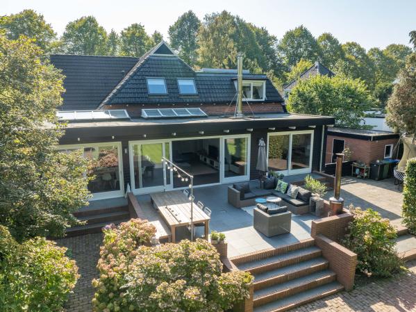 Deze vrijstaande woonboerderij uit 1920 is volledig gerenoveerd en fors uitgebouwd in 2007. Het resultaat is niet zomaar een verbouwing, maar een complete transformatie naar een indrukwekkend en ruim woonhuis met maar liefst 360 m² woonoppervlakte! De woning is op de begane grond voorzien van een royale sfeervolle living/woonkeuken in de uitbouw aan de achterzijde van het huis, een 2e woonkamer aan de voorzijde, twee werkkamers en een slaapkamer met badkamer. De verdieping beschikt over vijf volwaardige slaapkamers en een ruimte 2e badkamers met separaat toilet. Of u nu een groot gezin hebt, denkt aan kangoeroe wonen of een praktijk aan huis wilt beginnen, deze woning biedt de ruimte en flexibiliteit om aan al uw wensen te voldoen. De buitenruimte doet zeker niet onder voor het interieur. De tuin, met een oppervlakte van circa 475 m², is ontworpen door een lokaal bekende tuinarchitect. Het is een oase van rust en groen, met een groot grasveld waar kinderen heerlijk kunnen spelen. Vanaf de veranda van 30 m², die aansluit op de keuken, heeft u een prachtig uitzicht op deze ruime tuin.