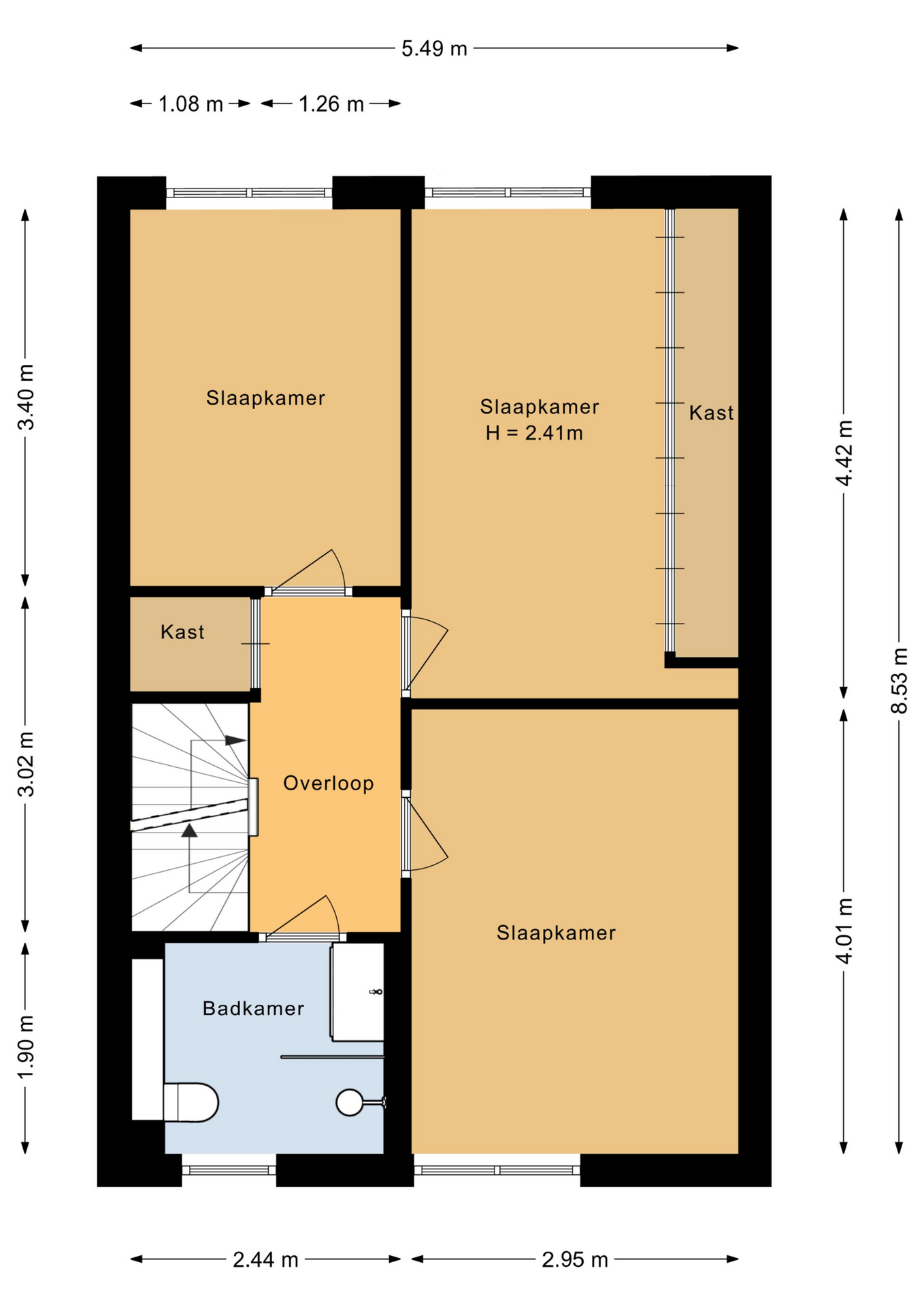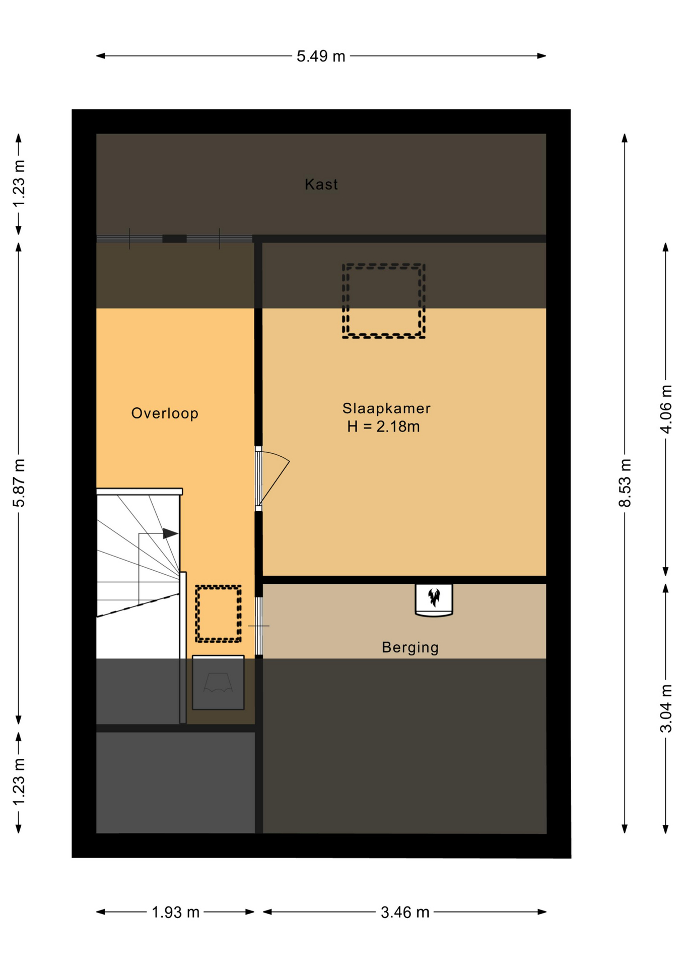 Overloop, 4e slaapkamer en bergschotten