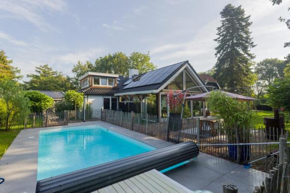 Luxe vrijstaande villa met hoogwaardige afwerking en energielabel A++, voorzien van guesthouse en een verwarmd zwembad, gelegen op een royaal perceel van 1.430 m²!Deze onlangs gemoderniseerde villa uit 1978 is zeer degelijk verbouwd en van vele gemakken voorzien. Het geheel is door diens royale en praktische indeling voor velerlei doelgroepen en toepassingsmogelijkheden geschikt. Hierbij kunt u bijvoorbeeld denken aan dubbele bewoning, maar ook inwoning of een kantoor-of praktijkruimte aan huis. Verder is er nog een luxe bijgebouw met toilet en badkamer én bergruimte. Ideaal te gebruiken als thuis gym of kantoor. De villa wordt verwarmd middels vloerverwarming in combinatie met een efficiënt en energiezuinig systeem van een warmtepomp, heatpipes en 58 zonnepanelen!