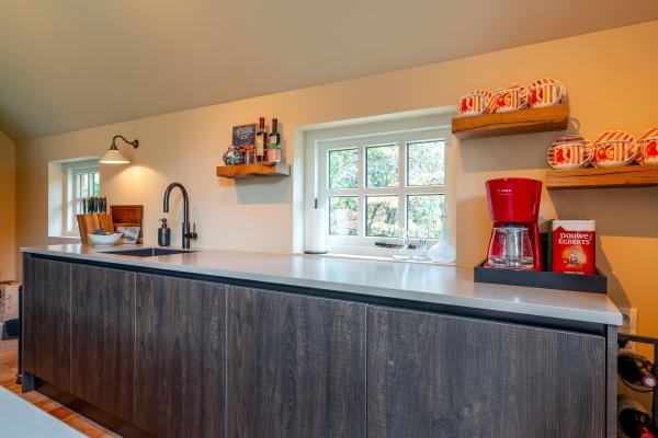 Deze charmante woonboerderij is recent volledig gerenoveerd en op fraaie wijze onder architectuur uitgebouwd, waardoor het nu een heerlijk levensloopbestendig en bovenal instapklaar huis is. Bij de modernisering is gebruikgemaakt van hoogwaardige materialen, terwijl diverse authentieke details zorgvuldig bewaard zijn gebleven, wat zorgt voor een perfecte balans tussen karakter en comfort. Op de begane grond wordt u verwelkomd in een sfeervolle living, een royale woonkeuken met elk een sfeervolle open haard, een luxe master bedroom met een walk-in-closet en een moderne badkamer. Zowel de begane grond als de bovenverdieping is volledig voorzien van vloerverwarming. Op de eerste verdieping zijn nog twee slaapkamers en een tweede moderne badkamer, waardoor de woning ideaal is voor gezinnen of stellen die van ruimte houden.