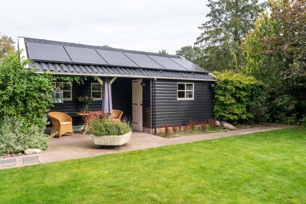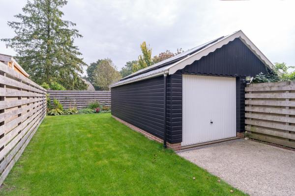 De besloten achtertuin op het noordoosten waar u van s 'ochtends vroeg tot s 'avonds laat altijd een plek in de zon of schaduw kunt vinden. De royale tuin biedt diverse zitplekken, waaronder een overdekt terras, volop rust en privacy. Daarnaast beschikt de woning over een vrijstaande garage, perfect voor het stallen van uw auto of als extra opslagruimte, en er is voldoende parkeergelegenheid op de oprit aan de voorzijde van het huis. Daarnaast zijn reeds alle aansluitingen aangebracht om er een gastenverblijf of B&B te realiseren.