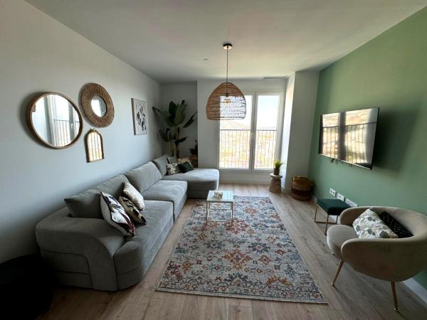 De woning heeft 115 m² bebouwd oppervlak en 70 m² woonruimte, met drie slaapkamers, twee badkamers en een slimme indeling die woon- en slaapgedeelte gescheiden houdt. De open keuken is compleet ingericht en sluit aan op een lichte woonkamer met uitzicht op de stad, zee en de bergen.