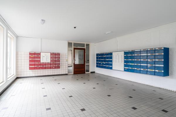 Centrale entree met brievenbussen, intercom, twee liften, trappenhuis en toegang tot de gezamenlijke parkeerplaats en de inpandige bergingen.