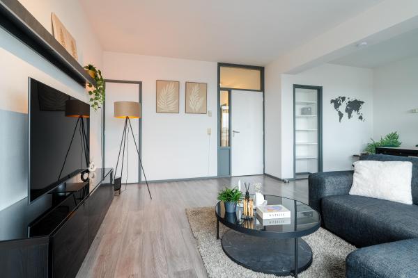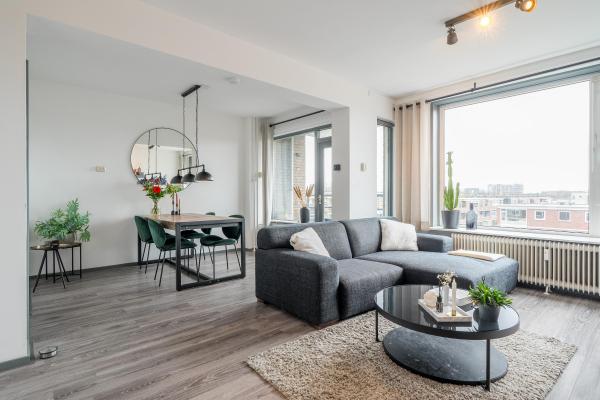 Aan de zuidkant van Groningen naast het welbekende Overwinningsplein en vlakbij het geliefde Hoornsemeer gelegen voormalig 3-kamerappartement met zonnig balkon met een weids uitzicht.Dit leuke appartement is volledig gerenoveerd in 2020/2021 en verkeert hierdoor dan ook in een goede staat van onderhoud. Via de hal komt u binnen in de ruime en lichte living, die dankzij de grote raampartijen heerlijk ruimtelijk aanvoelt. Verder beschikt het appartement over een eigentijdse keuken met diverse inbouwapparatuur, ruime slaapkamer van ca. 19 m² en een comfortabele badkamer met inloopdouche met regendouchekop en wastafelmeubel. Vanuit de woonkamer stap je zo het balkon op, een perfecte plek om 's ochtends en 's middags van de zon te genieten. Voor de avondzon kunt u terecht op de galerij. Als u behoefte heeft aan een extra kamer, kunt u eenvoudig een wand plaatsen in de woonkamer, waardoor er een tweede slaapkamer ontstaat. Het is zorgeloos wonen want de VvE verzorgd buitenom het onderhoud en er is een lift aanwezig. De auto parkeert u gemakkelijk op het binnenterrein van het complex en op de begane grond bevindt zich nog een berging die bij het appartement hoort.