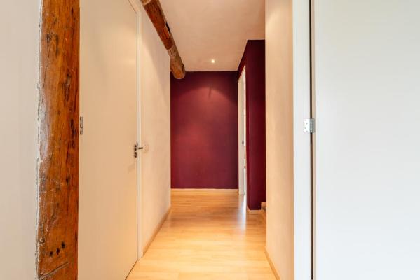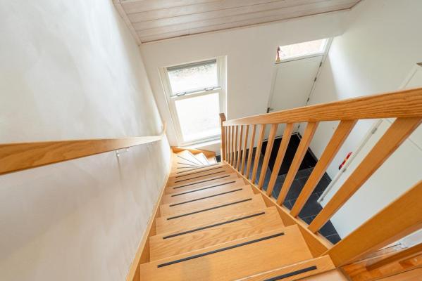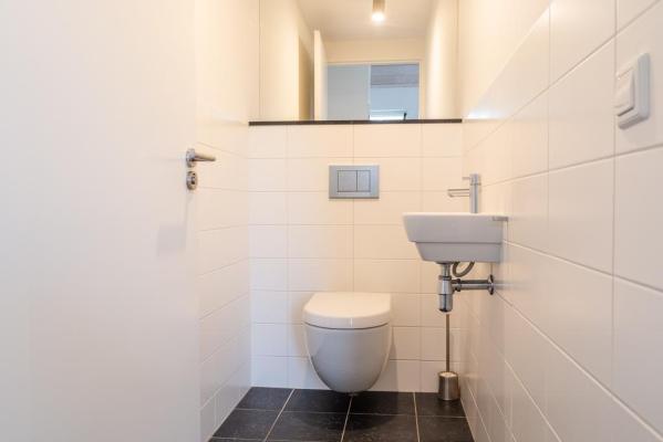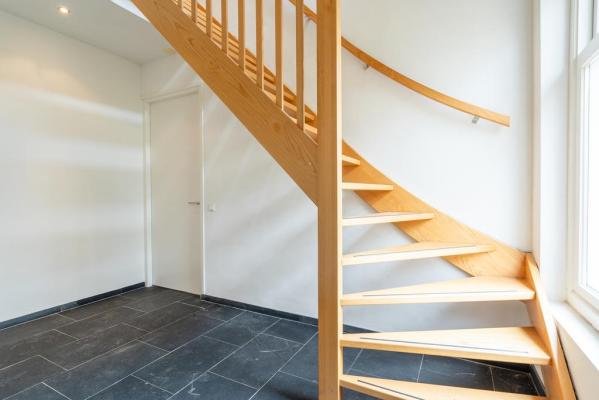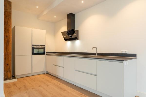 Entree/hal met trapopgang, toilet met fonteintje, ruime woonkamer met moderne open keuken voorzien van diverse inbouwapparatuur.