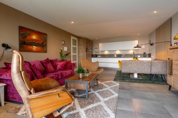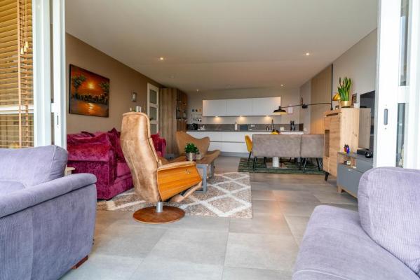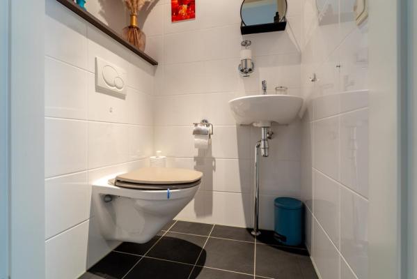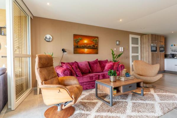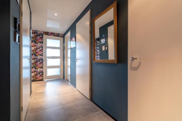 Entree/hal, meterkast, keurig wandcloset met fonteintje, toegang tot de zeer praktische bijkeuken/berging, lichte woonkamer van ca. 52 m2 met moderne open keuken o.a. voorzien van Bora inductiekookplaat met afzuiging, Quooker, stoomoven en oven. De bovenste ramen van de pui kunnen geheel worden geopend waardoor het buiten gemakkelijk bij het binnen is te trekken. Vanuit de hal bereikt men tevens de twee slaapkamers van resp. ca. 20 en 17 m², ruime badkamer met inloopdouche, ligbad met whirlpool (Sealskin) en wastafelmeubel.