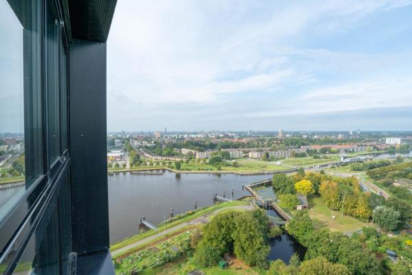 Op een prachtige locatie bevindt zich dit stijlvolle 3-kamer appartement op de 19e verdieping, inclusief parkeerplaats en een indrukwekkend uitzicht op de Oostersluis en de skyline van Groningen.