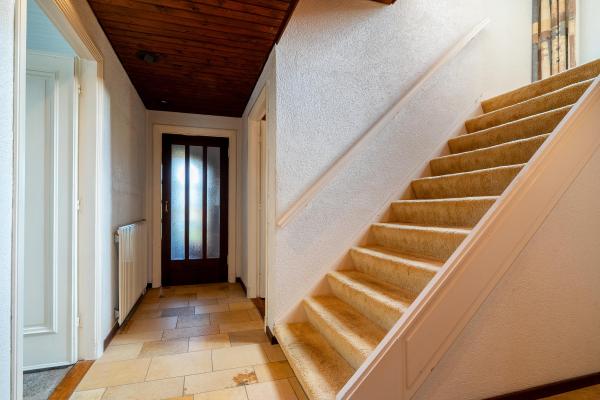 Entree/tochtportaal, hal met trapopgang, toilet met fonteintje, ruime living met openhaard, werkplek, eetgedeelte, 2e zitkamer, halfopen keuken voorzien van enige inbouwapparatuur, badkamer met douche en dubbele wastafel, achterhal, garage met zolder.