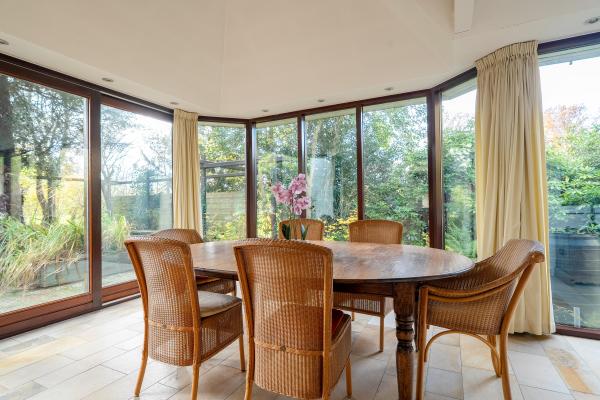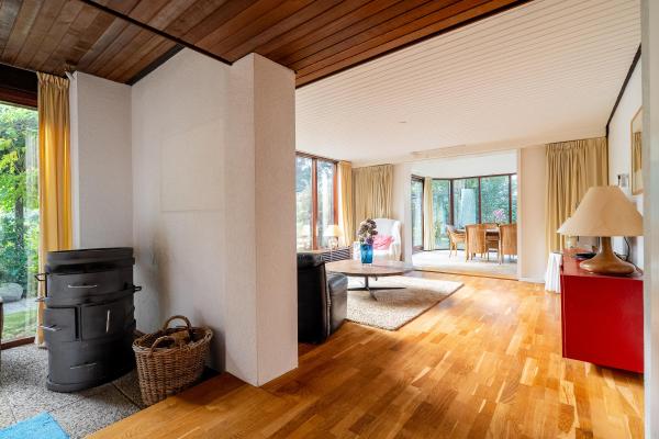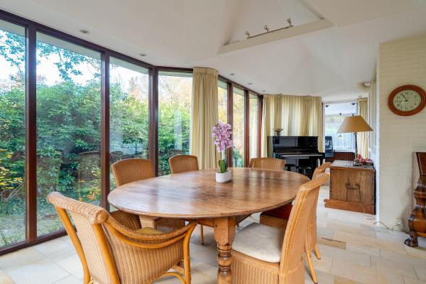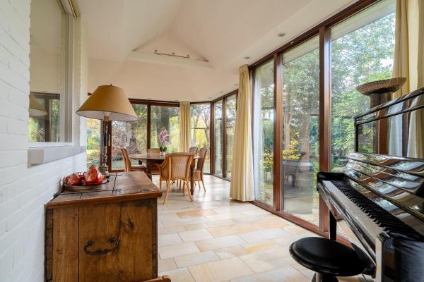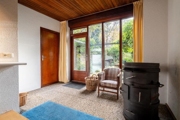 Bij binnenkomst wordt u direct omarmd door de sfeer en het lichte karakter van deze charmante woning. De hal met tochtportaal leidt u naar de de ruime woonkamer met open haard aan de voorzijde van het huis: een warme plek om samen te komen. Vanuit deze kamer alsmede vanuit de hal is de aangebouwde serre bereikbaar. De vele ramen bieden u hier enorm veel lichtinval met een uitzicht op voor-, zij,- en achtertuin.