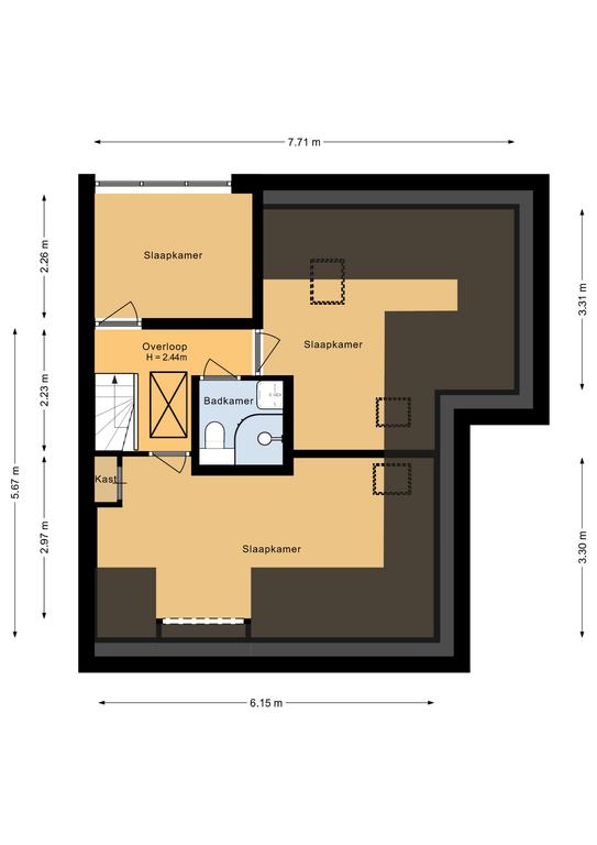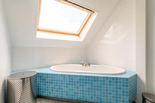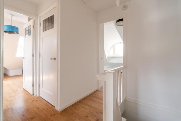 Overloop, separaat toilet, 3 slaapkamers, nette badkamer met douche, ligbad en wastafel.