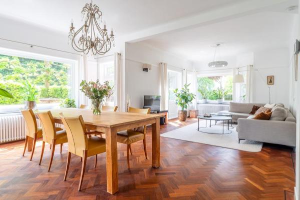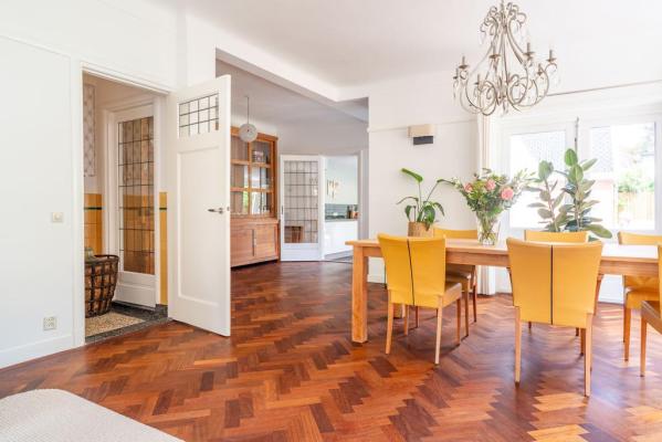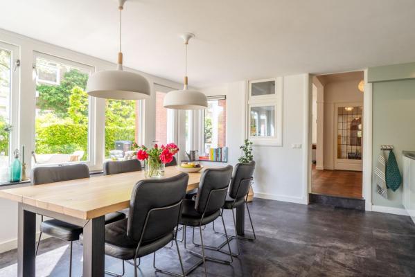 Prachtig gelegen in een groene, lommerrijke omgeving, biedt deze half vrijstaande jaren '30 villa een unieke combinatie van charme en comfort. Het royale perceel met aan de achterzijde vrij uitzicht over het landelijke landschap zorgt voor rust en privacyDeze karaktervolle woning weet de charme van de jaren '30 te combineren met hedendaags wooncomfort. De moderne keuken biedt een stijlvolle en praktische ruimte, perfect voor culinaire liefhebbers. Met vijf ruime slaapkamers en een flexibele indeling is er volop ruimte voor gezinnen die waarde hechten aan comfort en veelzijdigheid. De woning leent zich uitstekend voor uiteenlopende woonwensen, zoals een praktijk aan huis, dubbele bewoning of zelfs een kangoeroewoning. De lichte tuinkamer, die uitkijkt op de fraai aangelegde tuin, vormt een ideale plek om te ontspannen. De rustieke uitstraling van de woning wordt versterkt door het landelijke uitzicht en de privacy die de royale achtertuin biedt.