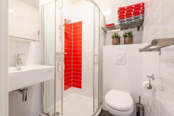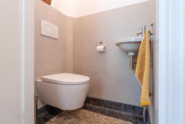 - Ligbad, Toilet, Douche, Dubbele Wastafel, Wastafel