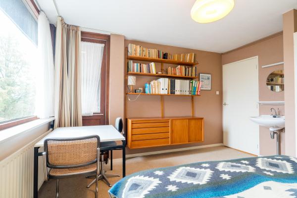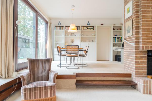 Deze robuuste woning uit de jaren '60 is met veel zorg bewoond en biedt een nieuwe eigenaar de mogelijkheid om naar eigen wensen te moderniseren. Bij binnenkomst via de ruime hal wordt u verwelkomd in de speelse en lichte living met een sfeervolle open haard. De woonkeuken grenst aan deze ruimte en biedt mogelijkheden voor een open keuken of vernieuwde indeling. Op de eerste verdieping bevinden zich drie volwaardige slaapkamers, waarvan er twee toegang hebben tot een balkon, en een badkamer. De tweede verdieping telt nog eens twee royale slaapkamers, waardoor de woning met in totaal vijf slaapkamers ideaal is voor een gezin, maar ook perfect voor stellen die van ruimte houden. De achtertuin is gelegen op het zuidwesten en beschikt over een royaal gazon met terras en is er een ruime garage. De garage is via de achterzijde van het perceel toegankelijk en er is tevens ruimte voor het parkeren van meerdere auto's op eigen terrein.