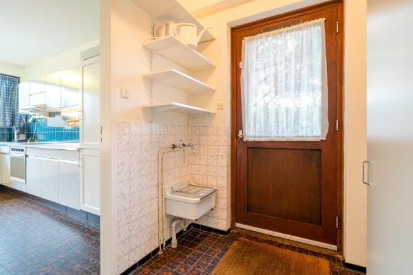 Entree/ruime hal met trapopgang, toilet met fonteintje, L-vormige living bestaande uit een zit-en eetgedeelte, afgesloten keuken voorzien van enige inbouwapparatuur, bijkeuken.
