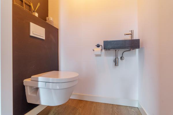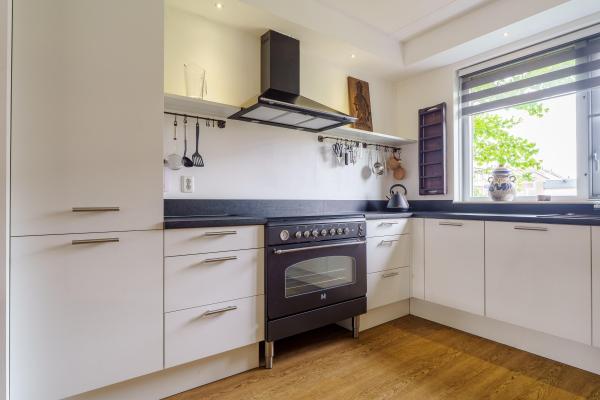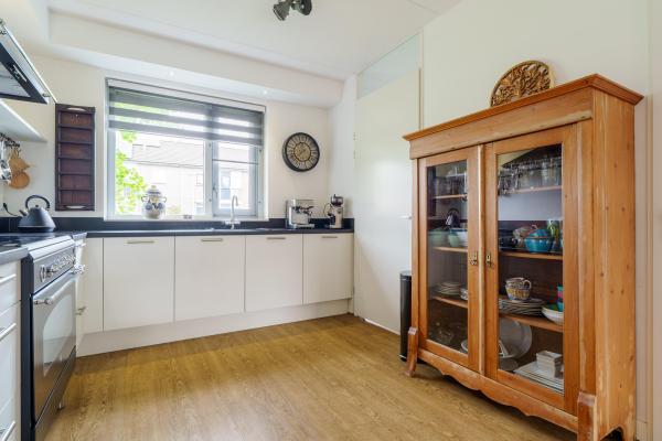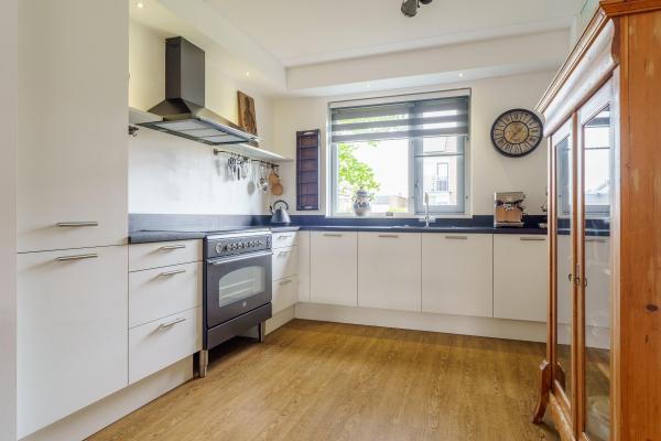 Entree/hal, wandcloset met fonteintje, tuingerichte woonkamer met toegang tot de tuin, moderne open keuken voorzien van diverse inbouwapparatuur, trapkast.