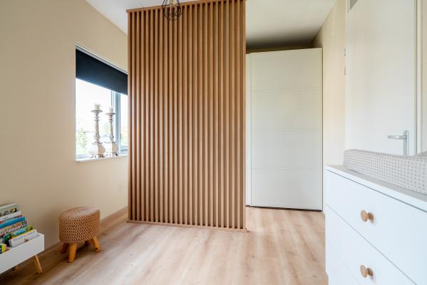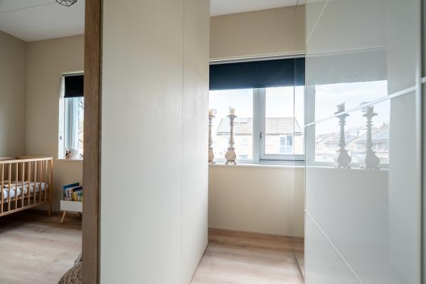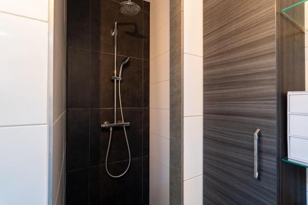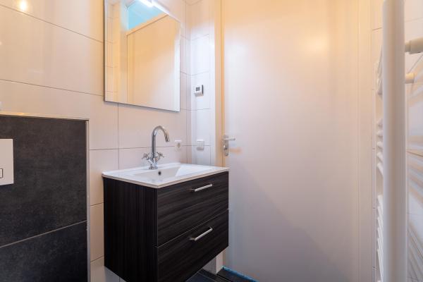 Overloop, 2 slaapkamers, moderne badkamer met douche, wastafel en toilet, stook/bergkast.