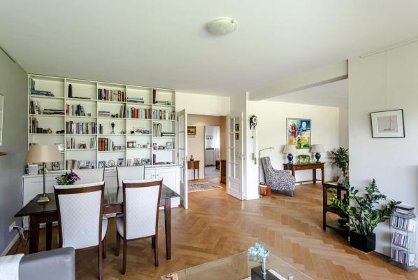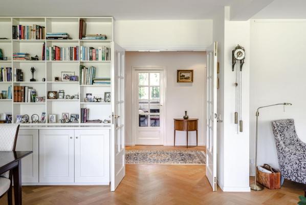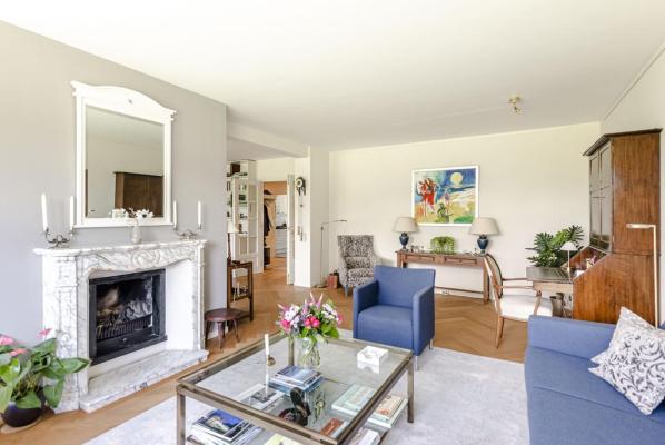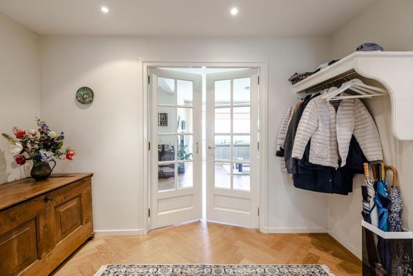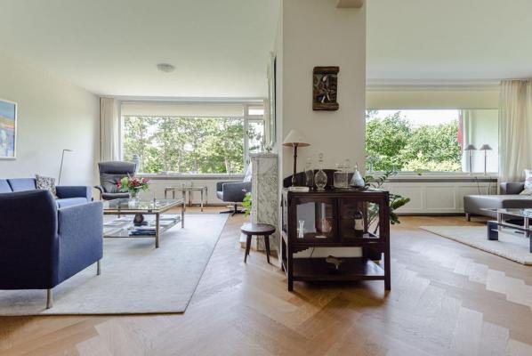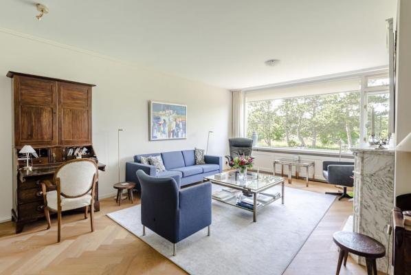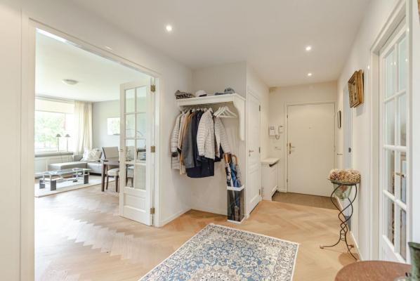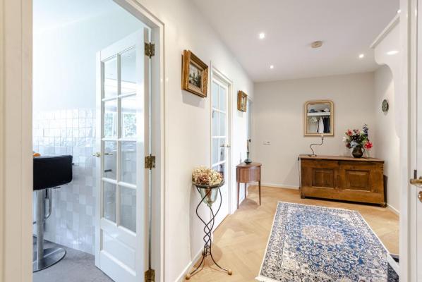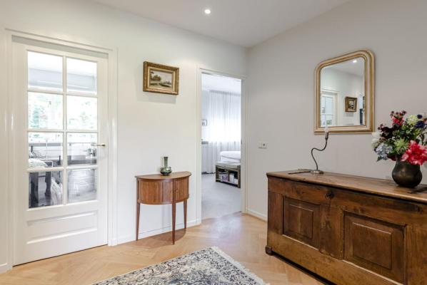 Parterre: entree appartement, hal met garderobe, toilet met fonteintje, moderne keuken met spoelbak, 5-pits gasfornuis met wokpit, afzuigkap, Gagenau combi magnetron/oven, koelkast, vaatwasser, inbouwkast en zitje, studeer/slaapkamer, masterbedroom met inbouwkastenwand, moderne badkamer met dubbele wastafel, toilet, inloopdouche, mechanische ventilatie, designradiator en vloerverwarming, U vormige, dubbele woonkamer met studeer-, eetkamer met mooie op de handgemaakte boekenkasten en twee zitgedeelten met openhaard, dubbele op afstand te bedienen zonneschermen en terras op het zuid-westen met prachtig uitzicht over het Koningshof.