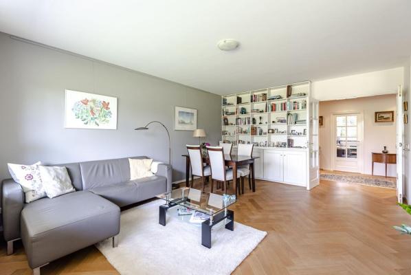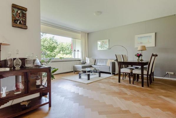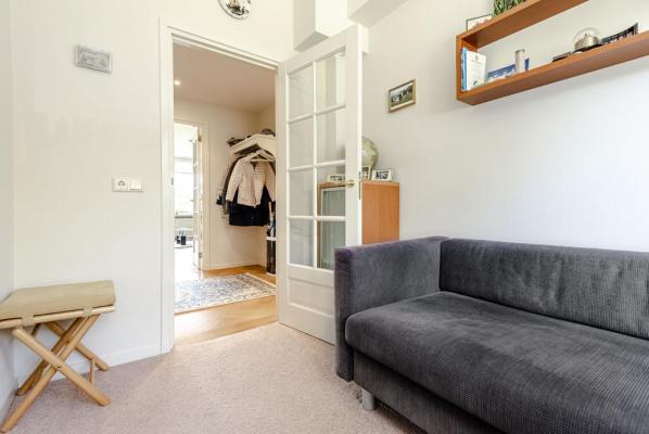 Dit appartement is door de huidige eigenaren verbouwd tot een hoogwaardig afgewerkte woning met eikenhouten parketvloeren in visgraat motief, een moderne keuken, strakke wandafwerking, hoge plafonds en fraaie details in de afwerking; zoals een fraaie radiatorombouw en handgemaakte boekenkasten. Van deze woning kan oprecht gesteld worden dat u er zo in kunt; concessieloos!