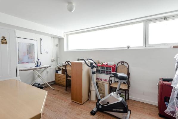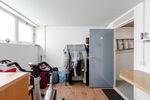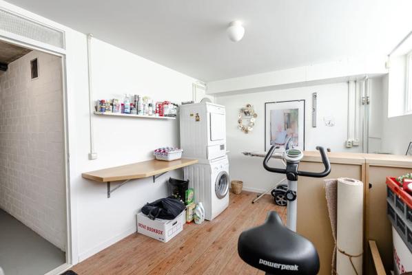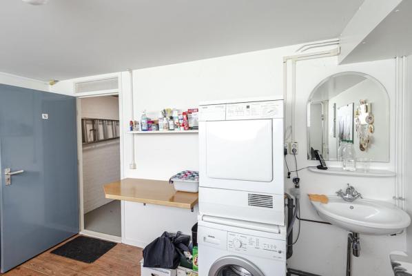 Basement: voorportaal lift, kamer thans in gebruik als waskamer met daglichttoetreding. Aansluiting wasmachine, droger en internet en nog een gemeenschappelijke fietsenberging.