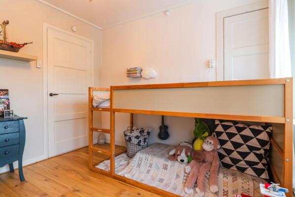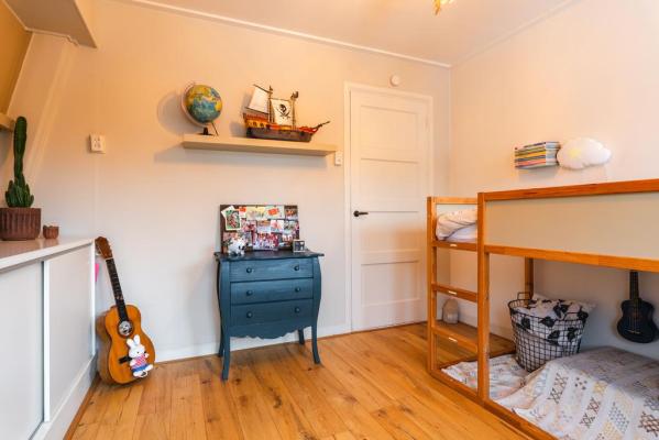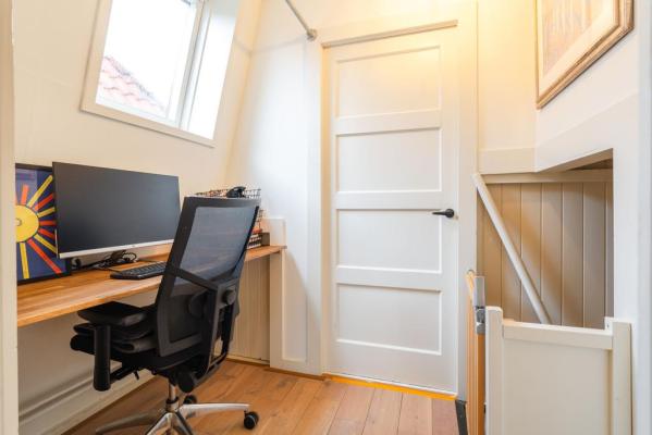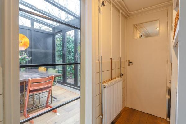 Op de begane grond beschikt de woning over een straatgerichte woonkamer met een houten vloer en houtkachel, een luxe open keuken, en een fraai uitgebouwde aluminium serre (2022) aan de achterzijde met toegang tot de tuin. Dit resulteert in een aangename en goed verlichte leefruimte op de begane grond. Verder beschikt de begane grond over een moderne badkamer met inloopdouche, wastafel en toilet. Op de bovenverdieping bevinden zich twee volwaardige slaapkamers met nagenoeg rechte wanden en vaste kasten. Op de overloop is een werkplek gecreëerd met een dakraam. De besloten achtertuin op het oosten is groot genoeg voor een barbecue met vrienden en beschikt over een kleine houten berging.