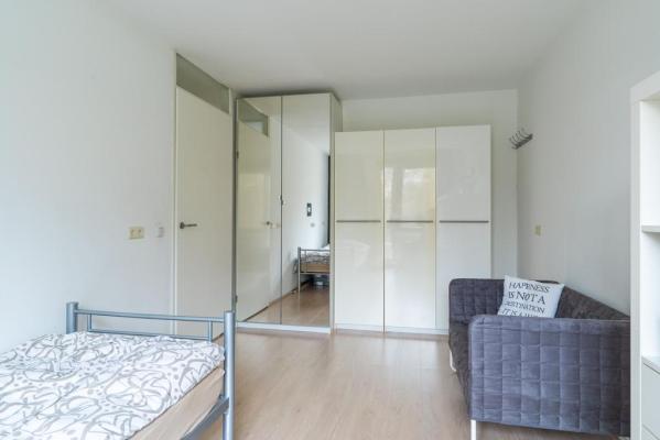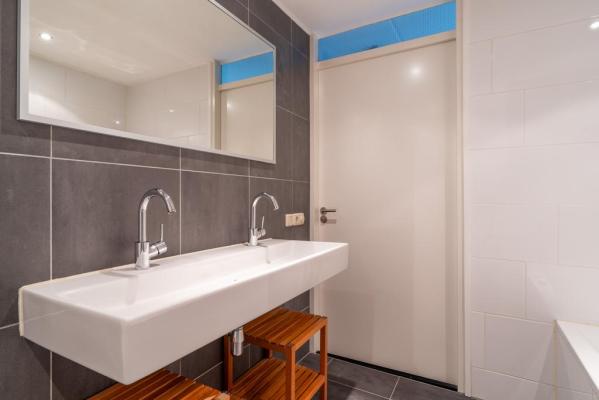 Middels een vaste trap is de tweede verdieping te bereiken. Hier vindt u twee slaapkamers van resp. 11 m² en 18 m² en een praktische ruimte met aansluitingen voor de wasmachine en droger.