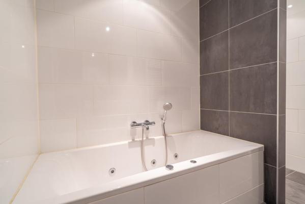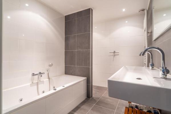 Op de eerste verdieping bevinden zich drie slaapkamers van resp. 7 m², 8 m² en 15 m² en de badkamer voorzien van een ligbad, inloopdouche en een vaste wastafel. Op de verdieping bevindt zich ook een separate tweede toilet.