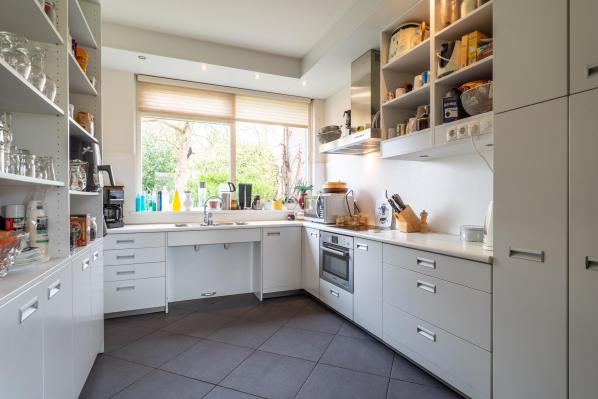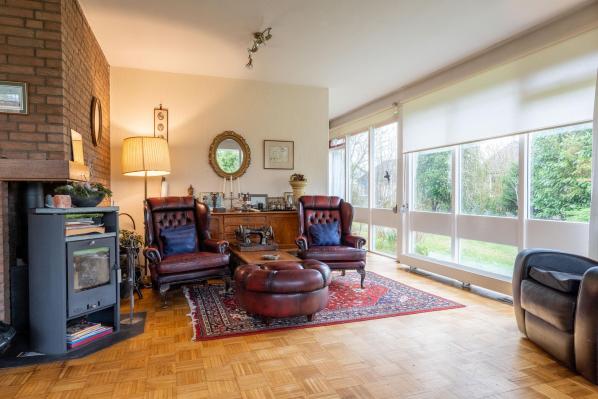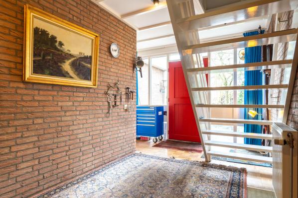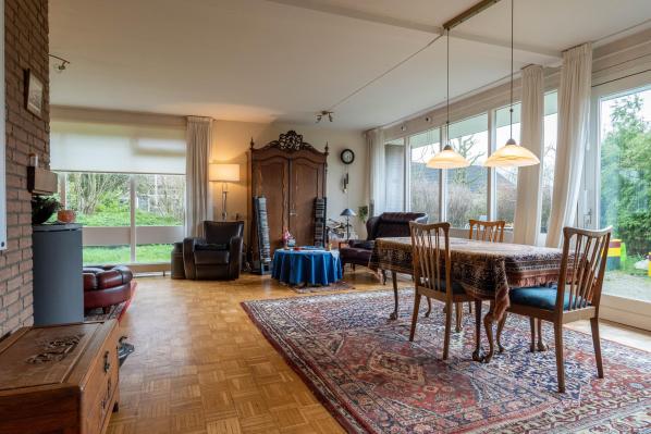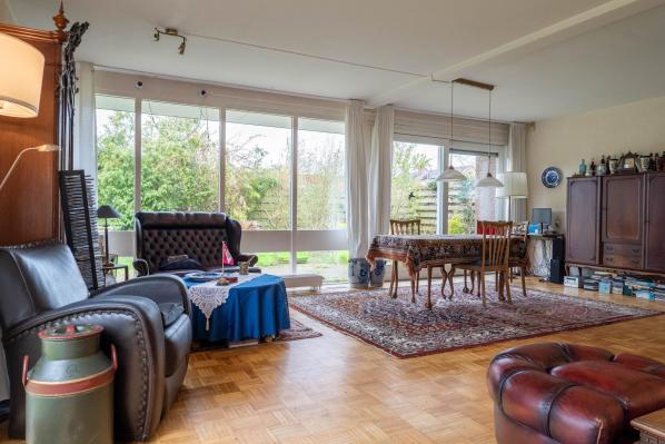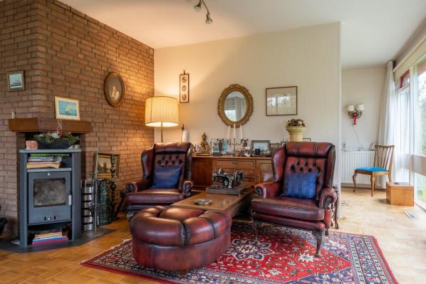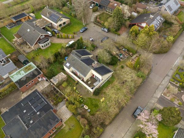 Deze oorspronkelijk in 1975 gebouwde gezinswoning kenmerkt zicht door veel ruimte en met name ook veel lichtinval, waardoor een prettige woonsfeer is ontstaan. Zo vindt u op de begane grond onder andere een riante living met houtkachel, werkkamer en een half open keuken. Op de begane grond bevindt zich tevens een slaap/logeerkamer met een eigen badkamer en de voormalige inpandige garage is direct bij de bouw door de eigenaar omgebouwd tot een extra slaapkamer met doucheruimte. Op de eerste verdieping bevinden zich nog eens 4 slaapkamers en een derde badkamer. Het geheel is door diens royale en praktische indeling in combinatie met twee slaap- en badkamers beneden voor diverse doelgroepen en toepassingsmogelijkheden geschikt. Hierbij kunt u bijvoorbeeld denken aan dubbele bewoning, maar ook inwoning, een bed & breakfast of een kantoor-of praktijkruimte aan huis. De tuin rondom beschikt over meerdere terrassen en door de aanwezigheid van diversiteit aan planten en bomen zorgen voor een intiem en groen geheel en bieden daarnaast in voorjaar en zomer volop privacy. De oprit aan de voorzijde van de woning biedt bovendien ook voldoende ruimte voor het parkeren van meerdere auto's. Aan de voorzijde van de woning heeft de huidige bewoner een groot stuk gemeente grond in gebruik.