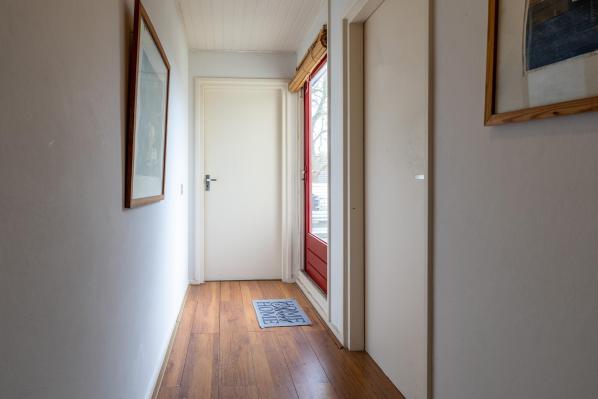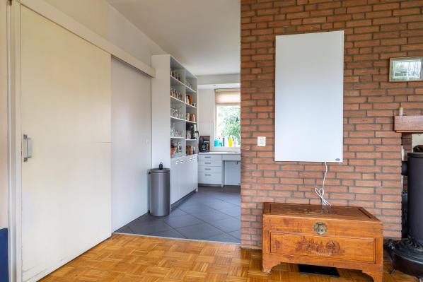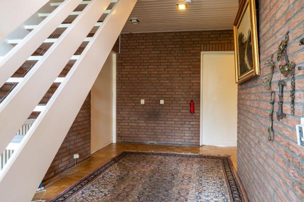 Entree/hal met trapopgang, toilet met fonteintje, ruime en lichte living met parketvloer, houtkachel en schuifpui naar de achtertuin, werkkamer, half open keuken voorzien van diverse inbouwapparatuur, bijkeuken met witgoedaansluiting en toegang naar buiten, slaapkamer met naastgelegen badkamer met douche en wastafel. Via de voorzijde heeft u tevens toegang tot een apart woongedeelte met gang, woon/slaapkamer en een badkamer met douche en toilet.