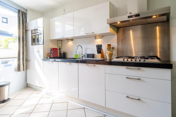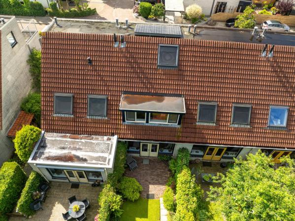 Deze keurige en volledig geïsoleerde woning uit 1990 is door de jaren heen zorgvuldig bewoond en goed onderhouden. Bij binnenkomst via de entree/hal komt u in de moderne open keuken (2010) aan de voorzijde en een tuingerichte woonkamer met dubbele openslaande deuren. De begane grond is voorzien van een plavuizenvloer met vloerverwarming. Op de twee verdiepingen vindt u vier volwaardige slaapkamers en een badkamer. In de afgelopen jaren zijn er diverse verbeteringen doorgevoerd. Zo is er op de eerste verdieping recentelijk een kunststof dakkapel geplaatst en op de zolderverdieping zorgt een groot dakraam voor extra lichtinval. Verder is de woning voorzien van 8 zonnepanelen en heeft een energielabel A! De openslaande deuren vanuit de woonkamer leiden naar de verzorgde diepe achtertuin die veel privacy biedt en een perfecte plek is om te ontspannen.