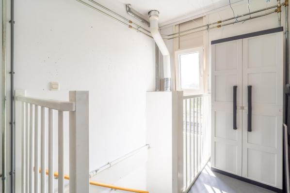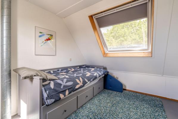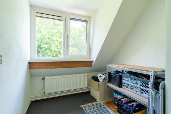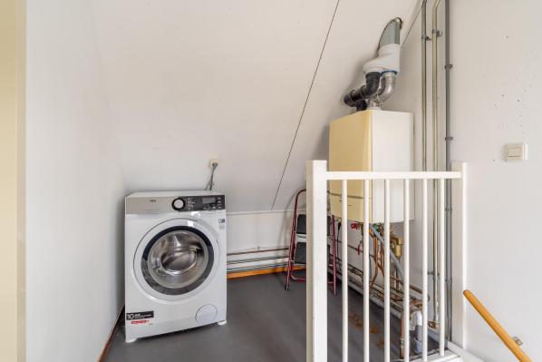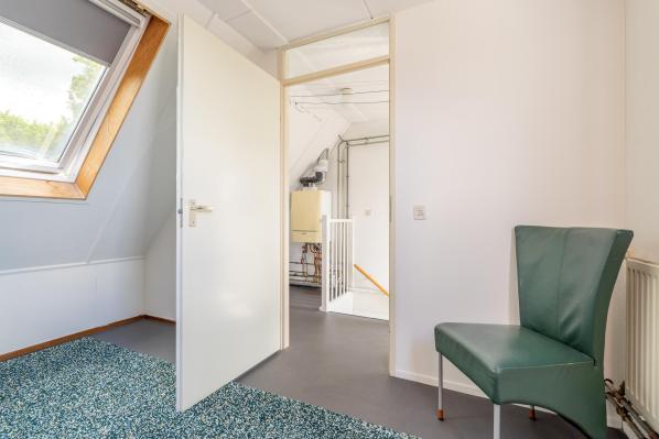 Overloop met wasmachineaansluiting en CV ketel, bergruimte en een vierde slaapkamer van circa 11 m² voorzien van een groot dakraam.