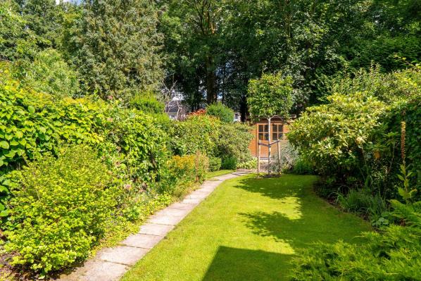 Op een rustige en kindvriendelijke locatie gelegen tussenwoning met een eigen oprit, berging en een prachtige diepe tuin!