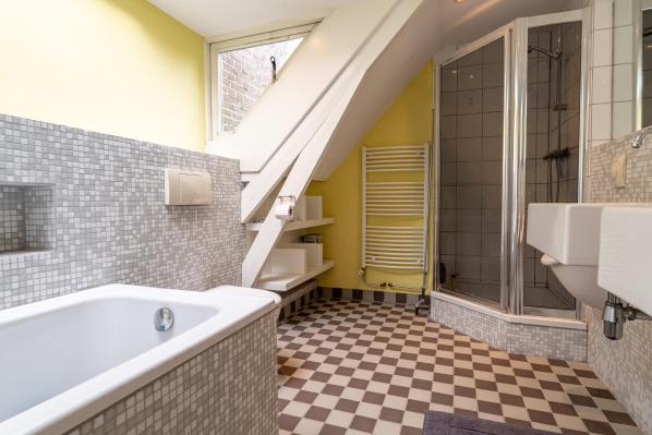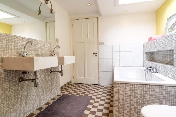 - Ligbad, Toilet, Douche, Dubbele Wastafel, Wastafel, Wastafelmeubel, Vloerverwarming, Wasmachineaansluiting