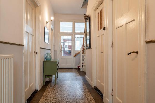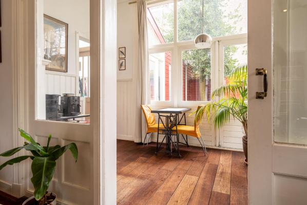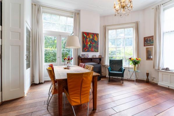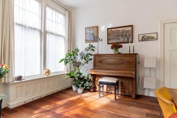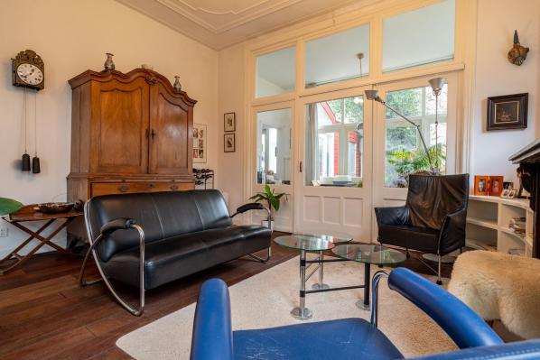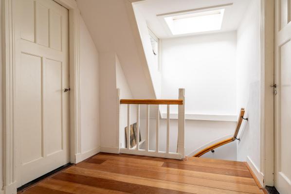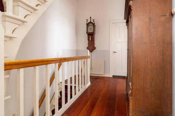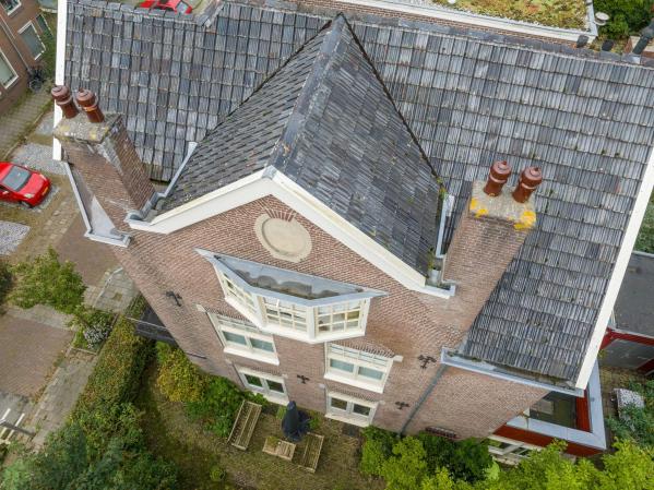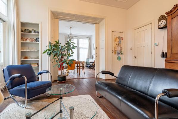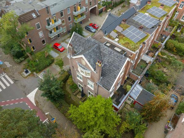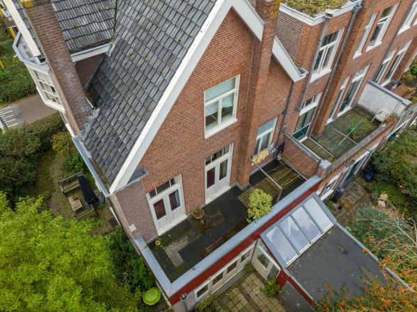 Deze charmante hoekwoning uit 1915 strekt zich uit over drie verdiepingen en biedt royaal ruimte aan haar bewoners. Met diverse karakteristieke stijlelementen die de gloriedagen van weleer weerspiegelen, straalt deze woning een warme en aangename sfeer uit. Bij binnenkomst op de begane grond wordt u begroet door een lichte woonkamer met prachtige suite deuren, een indrukwekkend hoog plafond en een aangebouwde serre op het noordoosten. De eerste verdieping herbergt drie slaapkamers en een moderne badkamer, terwijl de tweede verdieping nog eens drie ruime slaapkamers en een tweede badkamer biedt. Met in totaal zes slaapkamers en twee badkamers is deze woning bij uitstek geschikt voor een groot gezin of voor diegenen die wonen en werken aan huis willen combineren. Het geheel is gelegen op een hoekperceel van 269 m² en wordt omringd door een fraaie stadstuin waarin u heerlijk kunt vertoeven. De ideale plek om van het buitenleven te genieten.