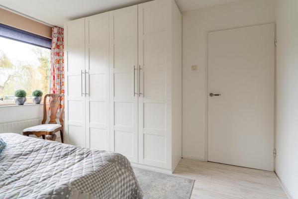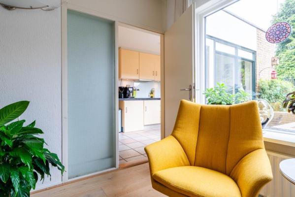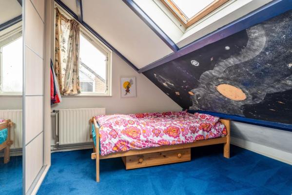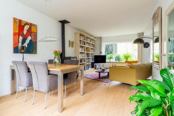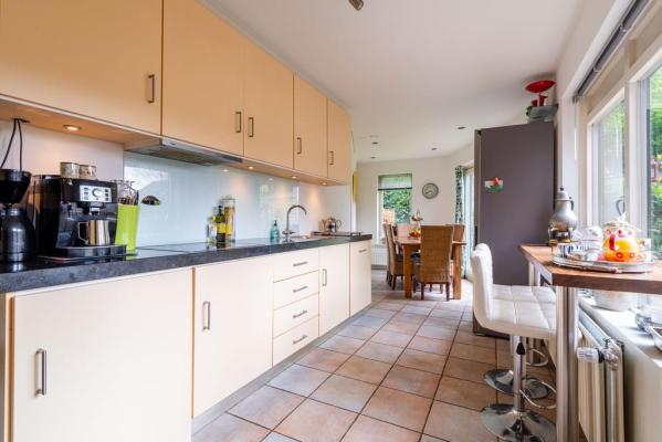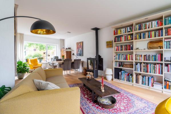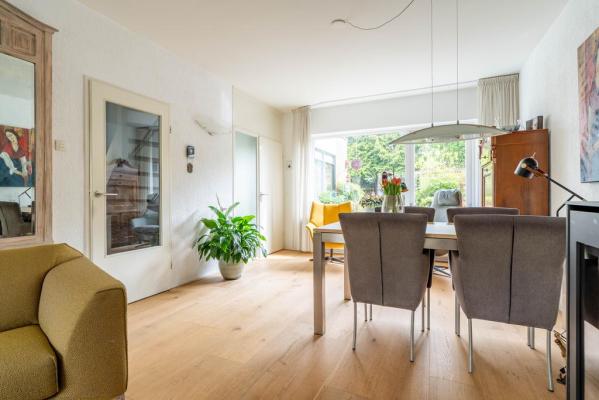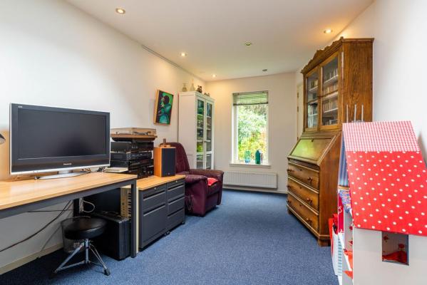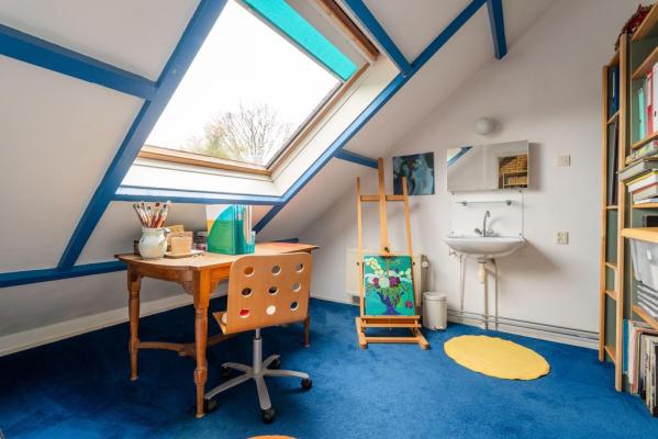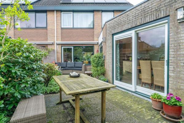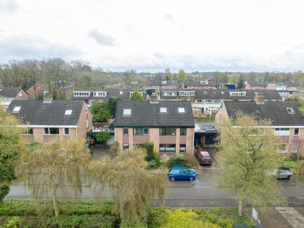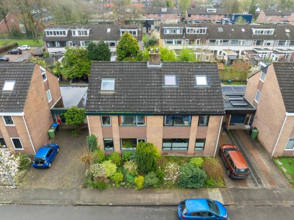 Deze ruime gezinswoning, gebouwd in de jaren '70, is goed onderhouden en is uitgebouwd aan de achterzijde. Hierdoor is een royale keuken ontstaan, compleet met eetgedeelte en een schuifpui naar de tuin én een praktische werkkamer. De extra kamer in de uitbouw biedt veel flexibiliteit voor verschillende doeleinden, zoals een atelier, een kantoor, een hobbyruimte, of zelfs als een 6e slaapkamer! Tevens vindt u op de begane grond een gezellige L-vormige living met houtkachel. Op de eerste verdieping bevinden zich drie slaapkamers en een moderne badkamer. Op de tweede verdieping is er een ruime overloop met een vliering en nog eens twee extra slaapkamers. Met in totaal vijf slaapkamers biedt deze woning voldoende ruimte voor een groot gezin. De achtertuin is gelegen op het zonnige zuiden beschikt over een vrijstaande houten berging, een terras, een gazon en een zonnige border.