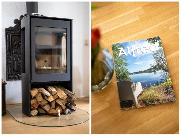 Entree/hal met trapopgang, toilet met fonteintje, L-vormige woonkamer met houtkachel, moderne dichte keuken voorzien van diverse inbouwapparatuur met eetgedeelte en schuifpui naar de achtertuin, kantoorruimte, berging.