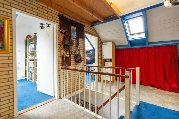 Ruime overloop met bergruimte en cv-opstelling, 2 slaapkamers.