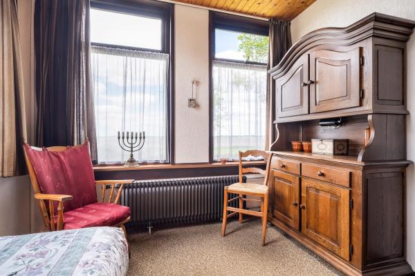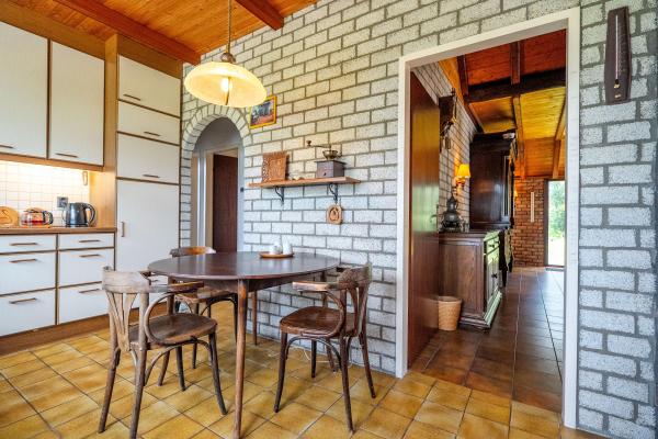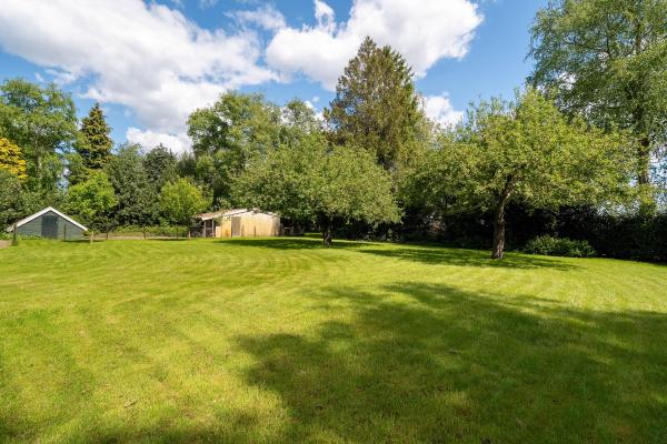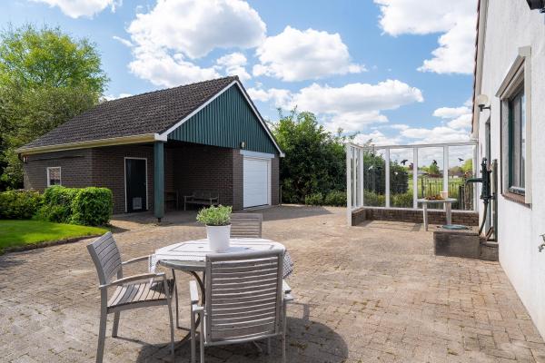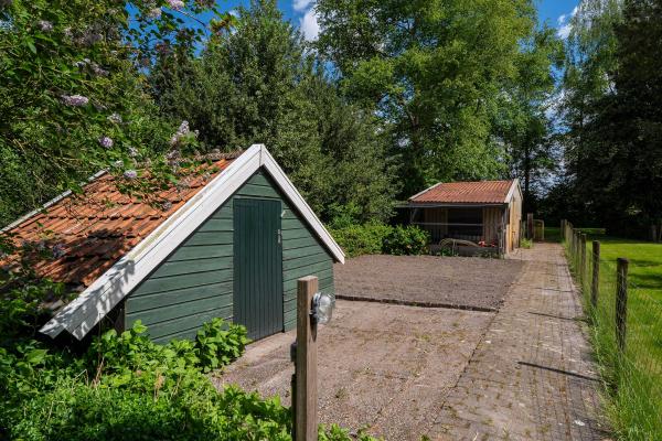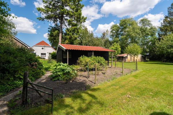 Met zijn jaren ’60-signatuur en landelijke stijl vormt dit huis een sfeervolle basis voor uw eigen woonideeën. Het is netjes onderhouden en biedt tegelijkertijd alle ruimte om het te transformeren naar de woonstandaard van nu. De woonkamer, bereikbaar via de hal, straalt warmte en charme uit dankzij de robuuste houten gebinten en het weidse uitzicht over de landelijke omgeving. De dichte keuken, drie slaapkamers en de badkamer bevinden zich tevens op de begane grond, waardoor gelijkvloers wonen tot de mogelijkheden behoort. Op de eerste verdieping vindt u nu een ruime bergzolder, maar deze biedt potentie te over: breid het woonoppervlak uit, creëer extra slaapkamers of een thuiswerkplek. De woning is geschikt voor zowel een stel als een gezin, en ook levensloopbestendig wonen is hier goed realiseerbaar. De buitenruimte is minstens zo aantrekkelijk: een diepe, groene achtertuin met een groot terras, volwassen beplanting en volop privacy. Hier komt u écht tot rust. De vrijstaande garage en meerdere bijgebouwen bieden ruimte voor opslag, klussen of hobby’s. Ook beschikt het perceel over een stuk weiland – perfect voor dierenliefhebbers of andere invullingen naar eigen idee.