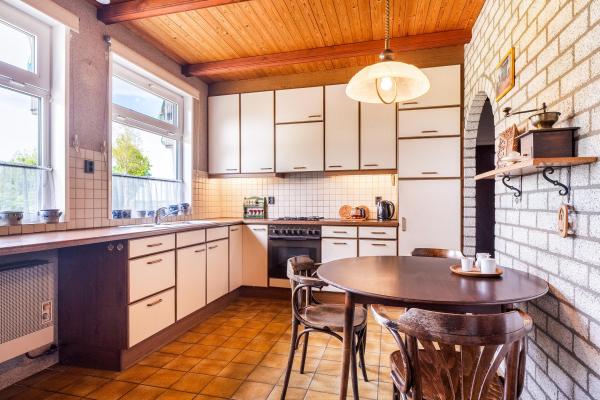 Entree/ruime hal, gezellige woonkamer met vrij uitzicht, open haard, gebinten en toegang naar buiten, dichte keuken voorzien van enige inbouwapparatuur, bijkeuken met witgoedaansluiting en cv-opstelling, 3 slaapkamers, badkamer met douche, ligbad, wastafel en toilet.