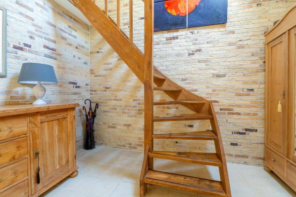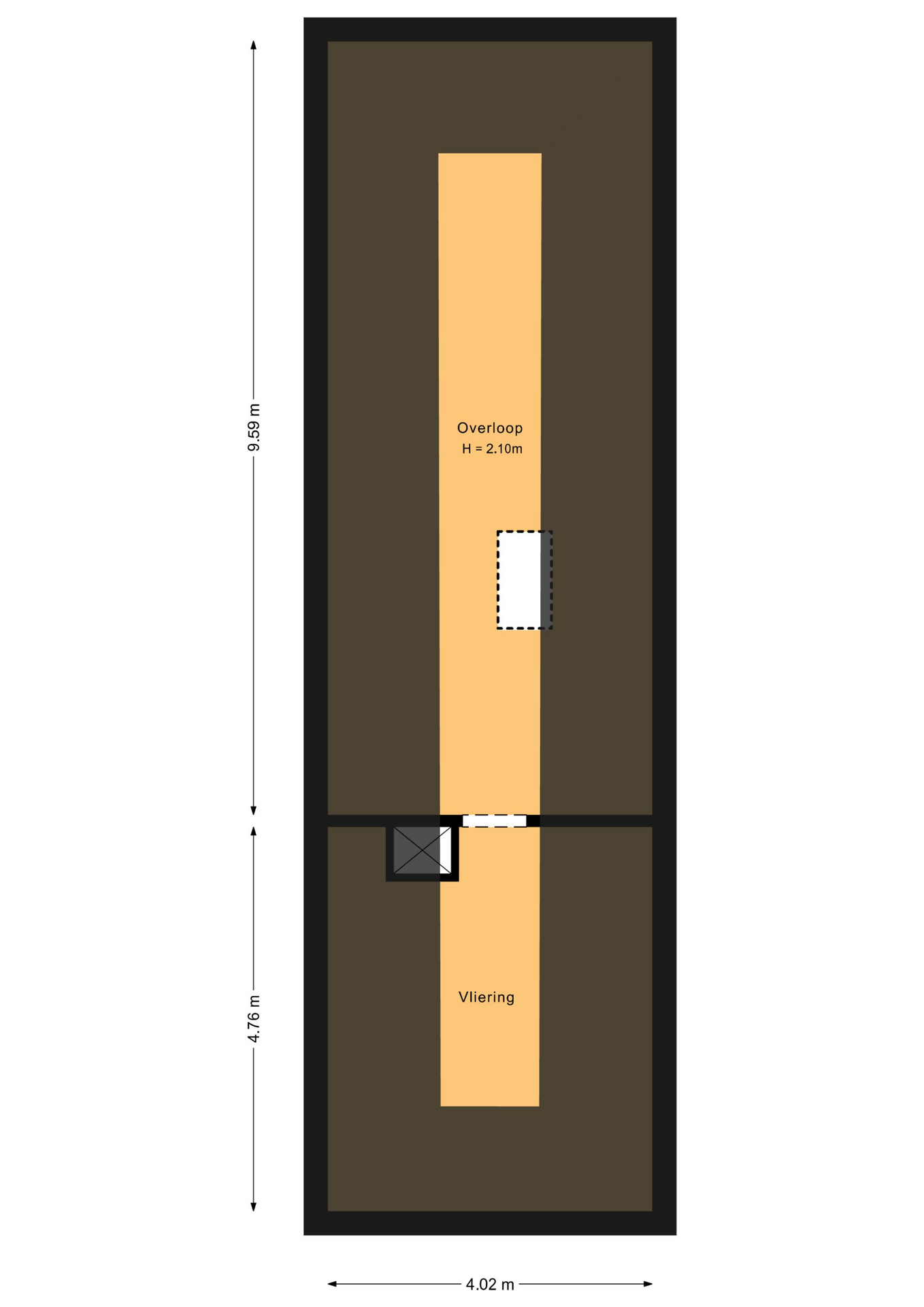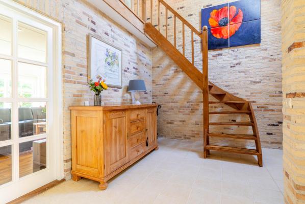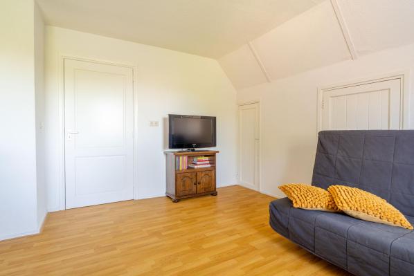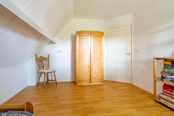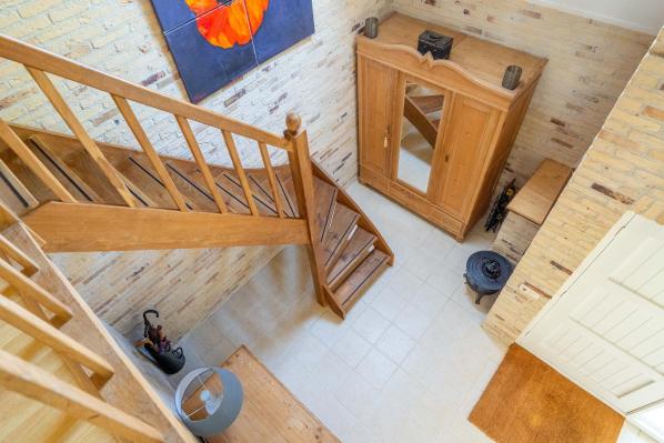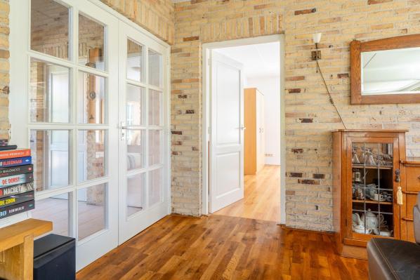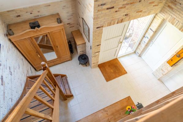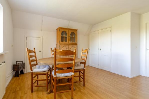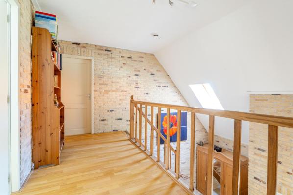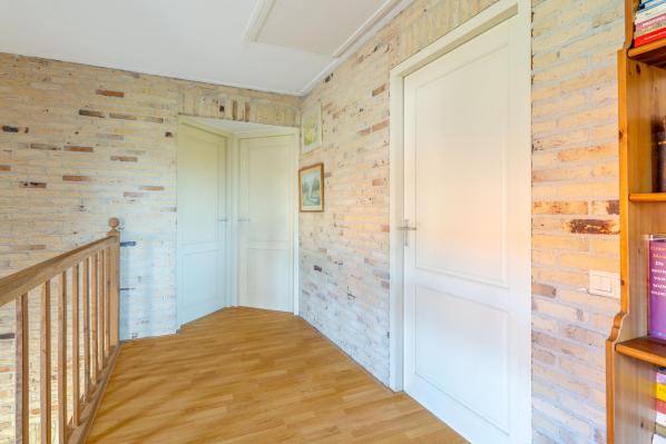 Ruime overloop die toegang geeft tot drie slaapkamers en de tweede badkamer. Op de overloop bevindt zich ook een vliering, bereikbaar via een vlizotrap.
