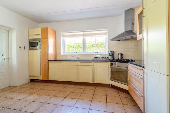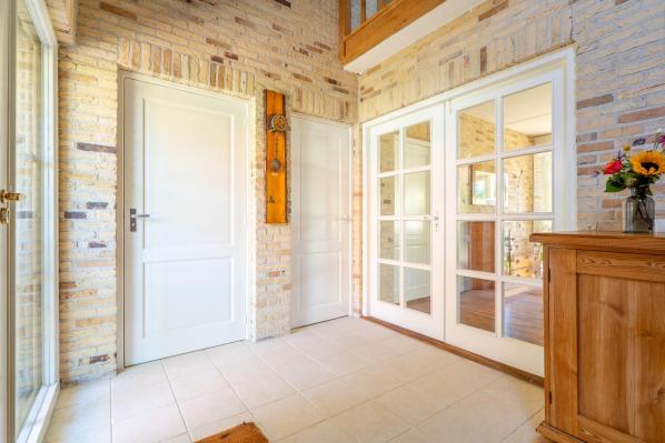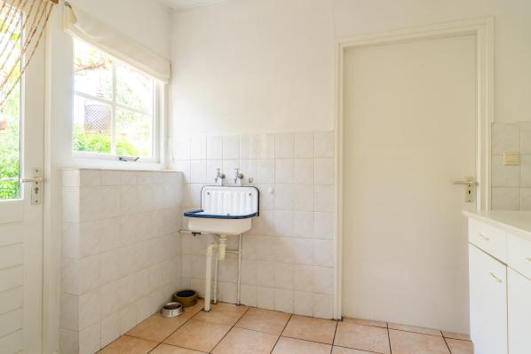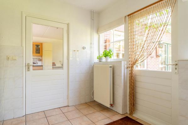 Entree/hal met trapopgang, toilet met urinoir en fonteintje. Via een dubbele deur vanuit de hal komt u in de ruime living met houtkachel en halfopen keuken. Aansluitend aan de keuken bevindt zich een bijkeuken, die doorloopt naar de garage. Aan de voorkant van de woning bevindt zich een slaapkamer met een ensuite badkamer, die onder andere is voorzien van een ligbad.