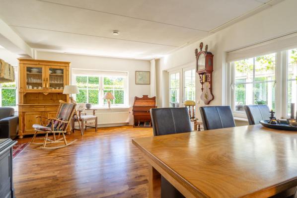 De villa verkeert in een goede staat van onderhoud en is gesitueerd op een riant perceel van bijna 1900 m². Met zijn royale begane grond, bovenverdieping en grote raampartijen straalt de woning een gevoel van ruimte en licht uit. Op de begane grond vindt u een ruime living en een halfopen keuken, evenals een slaapkamer met badkamer, wat het ideaal maakt voor levensloopbestendig wonen. Met in totaal vier ruime slaapkamers en twee badkamers biedt deze woning voldoende ruimte voor het hele gezin. De fraai aangelegde, diepe tuin loopt door tot aan het water, waar u een steiger vindt die perfect is om heerlijk aan te zitten.