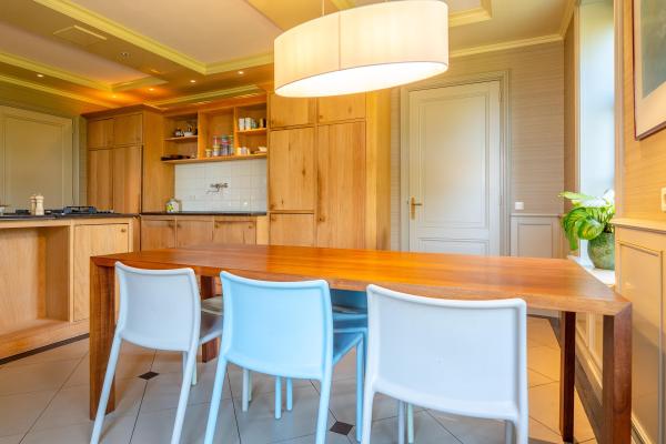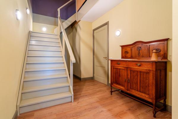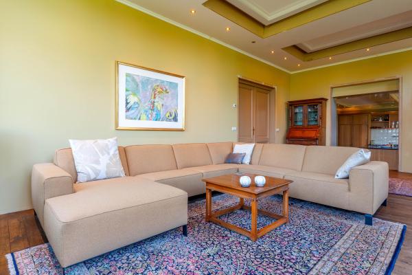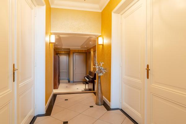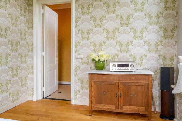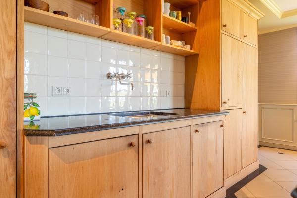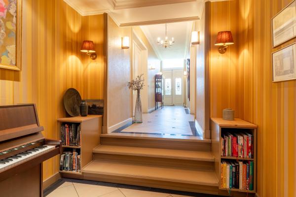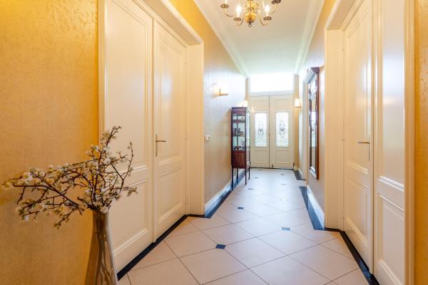 Entree/ruime hal, royale huiskamer met 4 hoge en brede ramen, een op maat gemaakte massief houten woonkeuken met kookeiland en uiteraard diverse inbouwapparatuur, twee ruime gangen, grote bijkeuken, twee kelders, twee ruime slaapkamers, een met toegang tot het terras, een royale badkamer met luxe douche, badmeubel en tweepersoons bad met designkranen, een walk-in-closet, een eventueel 3e slaapkamer of kantoor.